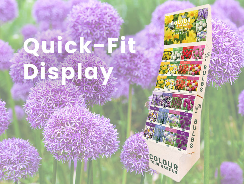 The Quick Fit Display is a smart and attractive solution for presenting spring-flowering bulbs, perfectly tailored to both retailers and wholesalers. Its compact footprint and vibrant design make it ideal for any shop floor. Boost your sales with one smart display: the Quick-Fit Display by Kébol!